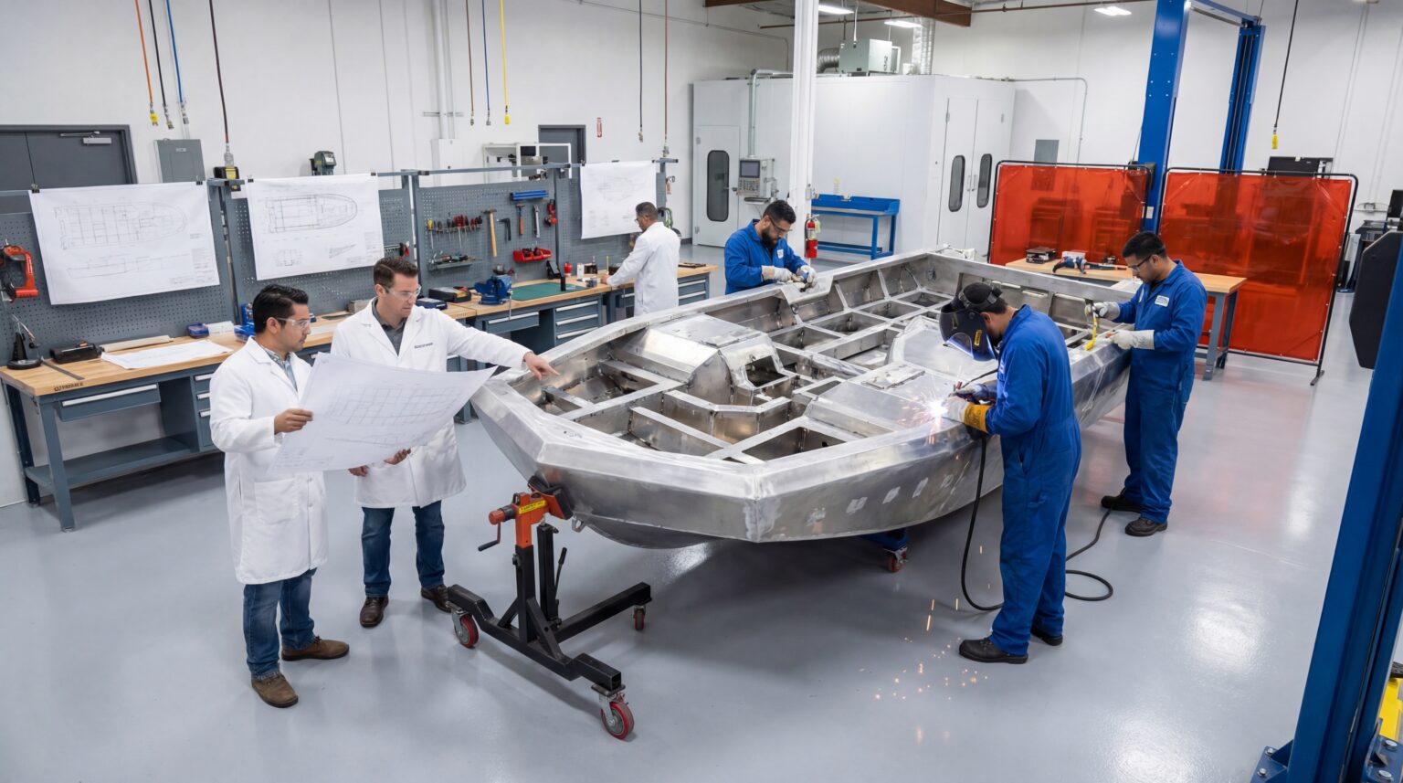 Instead of modifying a traditional car chassis for water use, the platform is built around a welded aluminum marine hull designed to perform as a real boat while still maintaining road-legal capability.