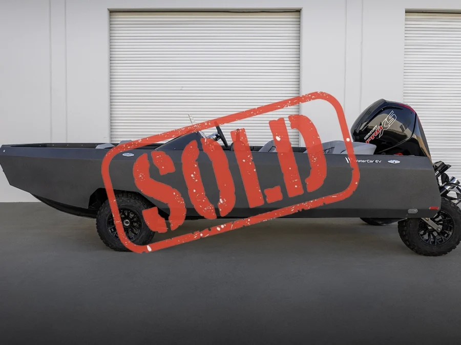 Factory built and delivered in late 2025, this Grey/Black Tactical Package configuration reflects a rugged, utility-forward specification of the WaterCar EV platform.