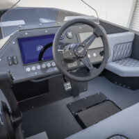 Finished in a full matte-black finish with premium grey diamond-stitched seating, this build presents a stealth, performance-driven profile while maintaining the welded aluminum marine hull construction and integrated street-legal Low-Speed Vehicle platform that define WaterCar EV.
