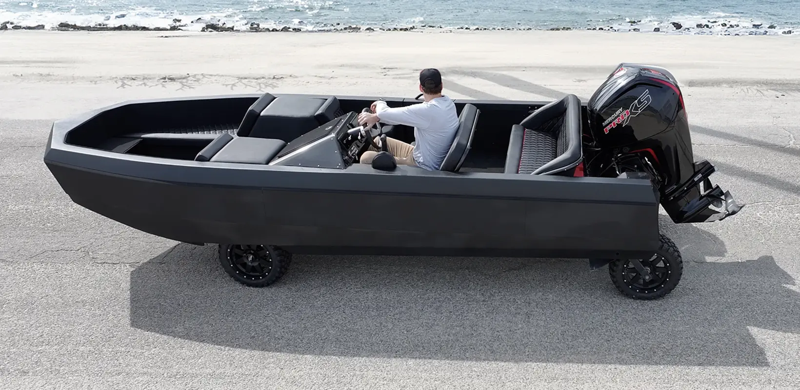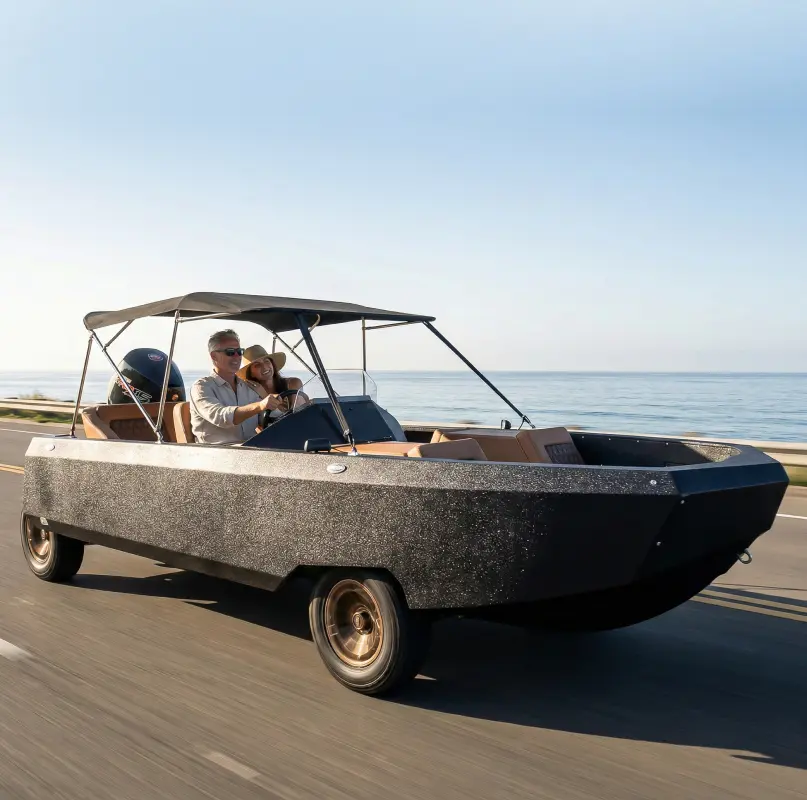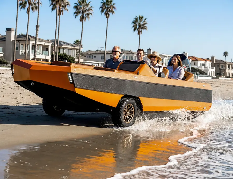 More than 25 years of marine and automotive innovation led to the WaterCar EV — a comfortable 19-foot-class boat that transforms into a street-legal electric Low Speed Vehicle at the push of a button. Designed and hand-built in Southern California.